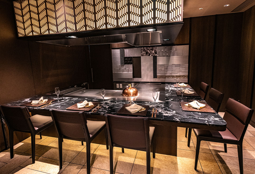 A dining room with its own Teppan-yaki counter. For 2 to 3 people, a private room fee of 22,000 yen (tax included, 10% service charge added) will be charged.