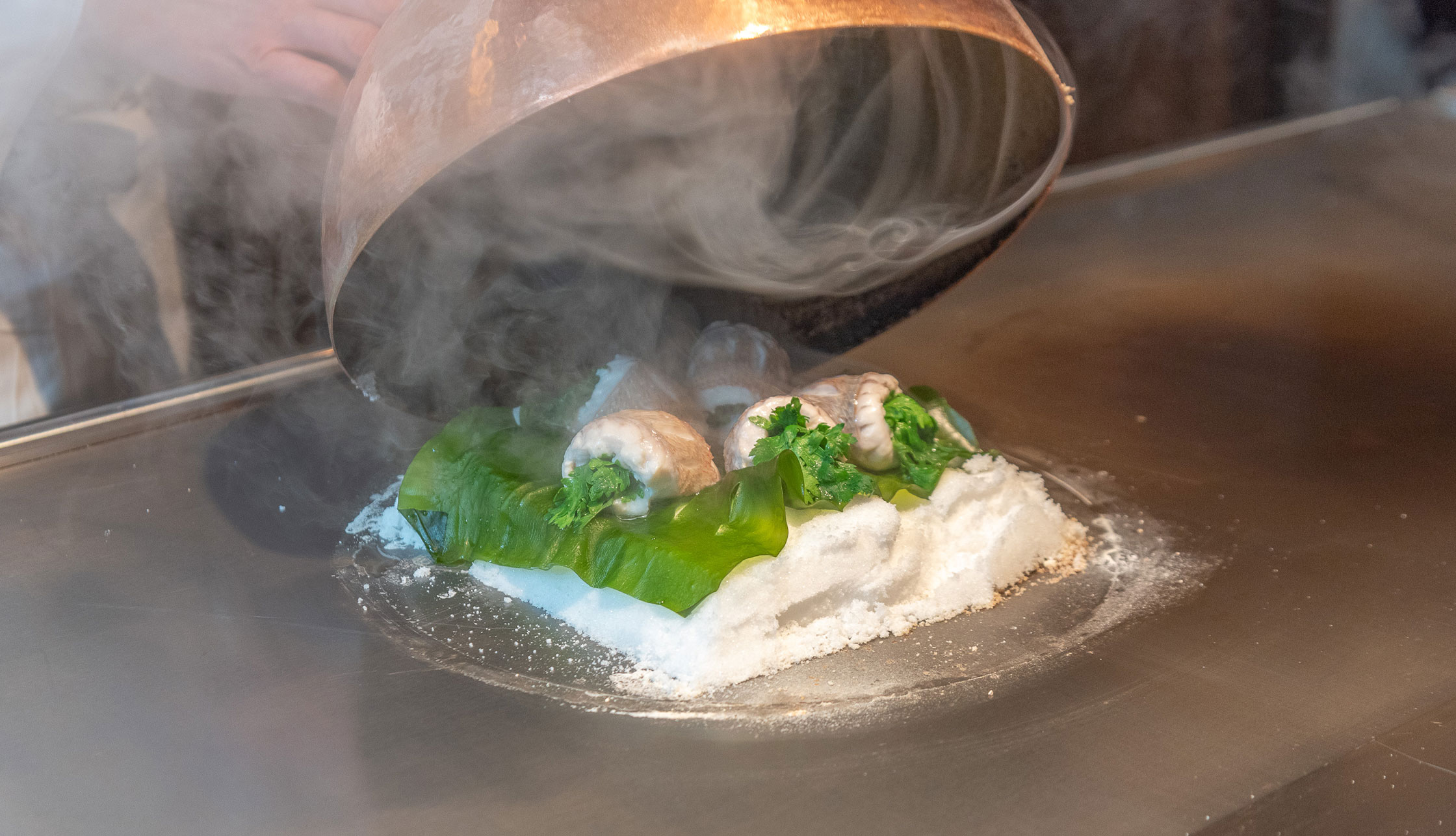 お客様の目の前でシェフが調理致しますので、鉄板焼きの醍醐味を存分にご堪能いただけます。 -